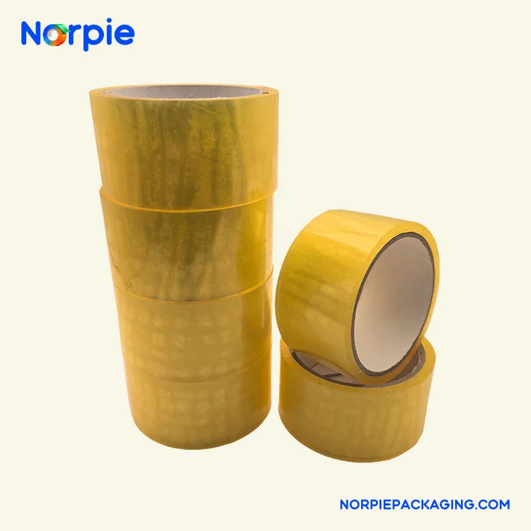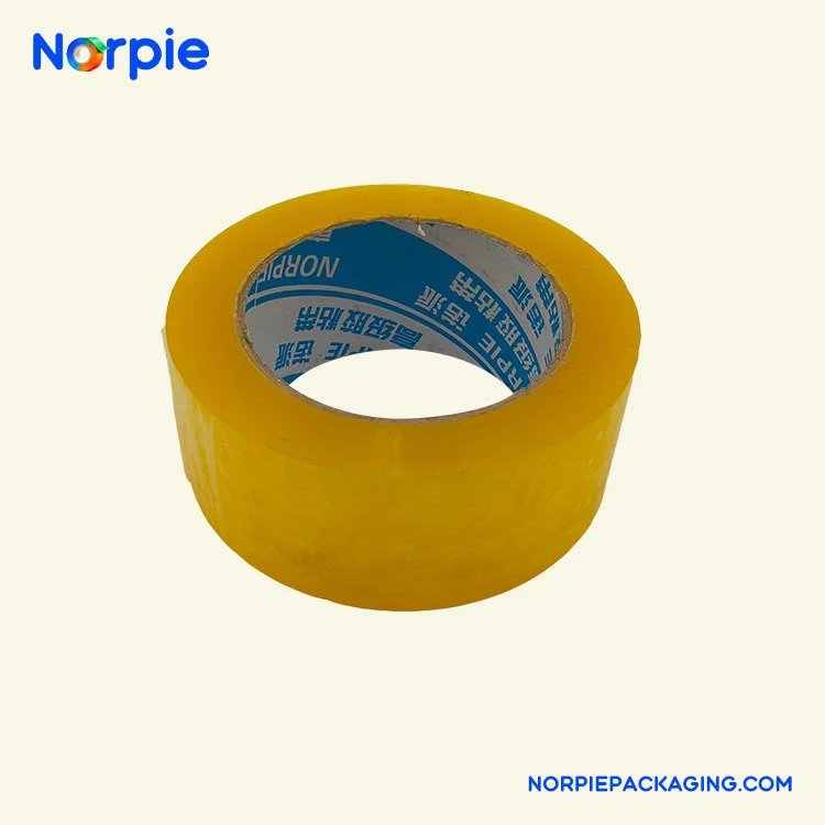 Norpie® produit du ruban d'emballage jaune clair en utilisant un film BOPP de qualité supérieure comme matériau de base, recouvert d'un adhésif acrylique sensible à la pression à base d'eau respectueux de l'environnement. Le produit présente une épaisseur de 0,048 mm, avec une adhérence initiale d'au moins une bille d'acier 12# et un temps de rétention de l'adhérence de plus de 20 heures, offrant d'excellentes performances de liaison et des avantages environnementaux. L'adhésif à base d'eau est non toxique et inodore, avec une teneur en COV bien inférieure aux normes nationales, et peut être utilisé à des températures allant de -5 ℃ à 50 ℃.
